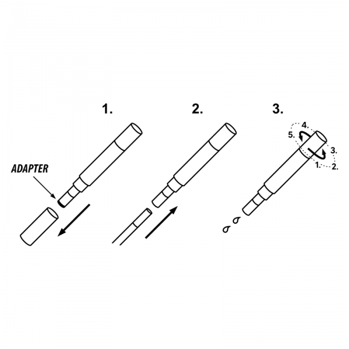 3. Obracaj końcówką aplikatora 5 razy, odczekaj 3-4 sekundy, aż aromat rozprowadzi się po filtrze. Standardowy smak uzyskasz po 5 kliknięciach. Jeżeli potrzebujesz więcej lub mniej aromatu podczas palenia – obróć końcówkę mniej lub więcej razy.